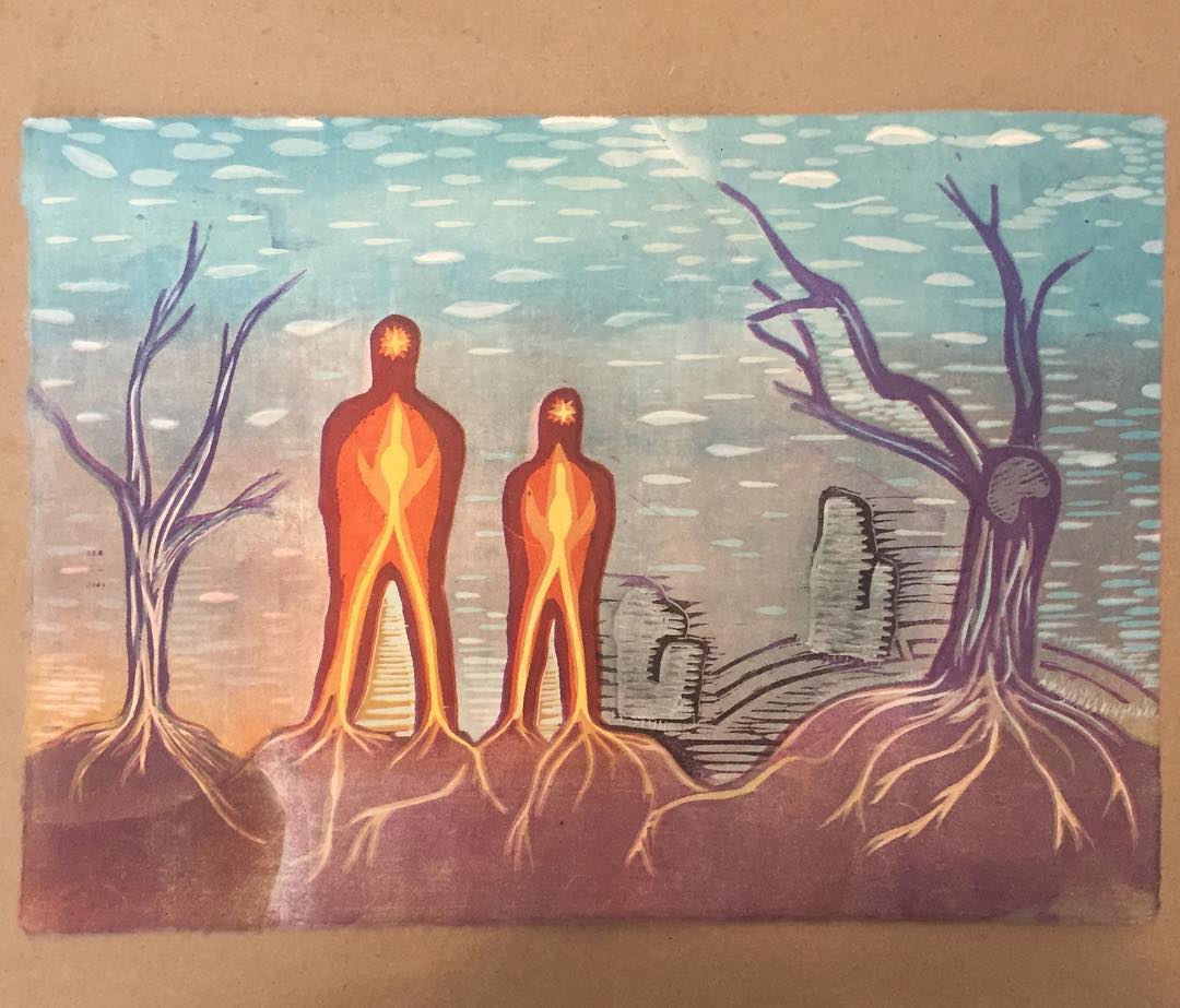 Second print from my time at @constellationstudios this week. Two block reduction woodcut. I’m beat and content from five days of printmaking. #relief #printmaking #woodcut